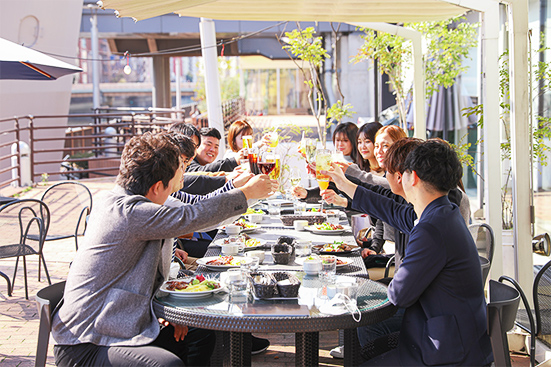 ルートゼロでは、より活発な交流が生まれるよう社員同士のランチやディナーで使用できるカンパイ手当を支給している。