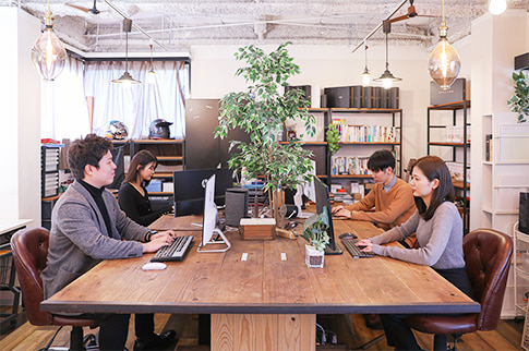 ルートゼロの社員がオフィスで仕事をする際はこの場所を利用する。社員同士のコミュニケーションが取りやすく、業務効率が高くなるように設計されている。