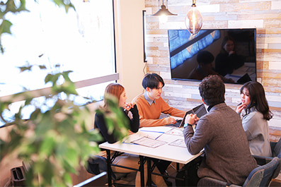 ちょっと気分を変えて仕事をしたい。お昼ご飯を食べたい。大きなモニターで打ち合わせがしたい。そういった要望を叶えるために用意したスペースだ。君の好きなように使ってほしい。