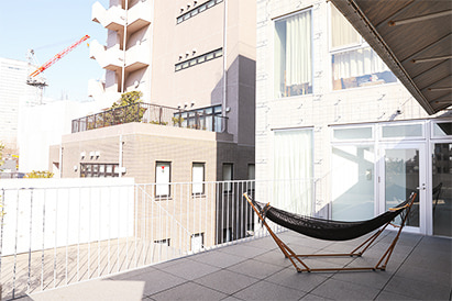 ハンモックを常備した休憩スペースだ。ちょっと休憩したいときなどには是非気軽な気持ちで使用してほしい。社員同士での交流会で使用するときもある。
